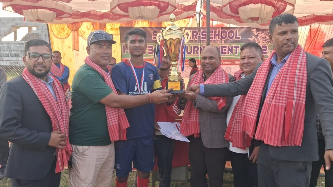 सिमरा डुमरवाना स्कुल हबको आयोजनामा सम्पन्न प्रतियोगितामा सिनियरतर्फ सिमरा पब्लिक स्कूलले उपाधि हात पार्यो भने जुनियरतर्फ मिसन एकेडेमी विजेता बन्न सफल भएको हो । आज सम्पान्न टुर्नामेण्टका बिजेता टिमलाई समापन तथा पुरस्कार बितरण समारोहका बिच आयोजकले शिल्ड तथा प्रमाणपत्र बितरण गरेको छ । समापन समारोहका अध्यक्षता हबका अध्यक्ष बसन्त ढकालले गरेका थिए भने बारा जिल्ला फुटबल सङ्घका अध्यक्ष रामचन्द्र लामा प्रमुख अतिथिका रूपमा उपस्थित थिए। समापन समारोहलाई सम्बोधन गर्दै प्रमुख अतिथि लामाले जिल्लामा ग्रासरुट लेभलबाट खेलकुद विकास गर्न जिम्मेवार संस्थाहरु अघि नसर्दा बिद्यालयस्तरका यस्ता पहलले फुटबलको भविष्य उज्जवल बनाइरहेको टिप्पणी गर्नुभयो । उंहाले स्थानीय तहसँग निरन्तर समन्वय भइरहेको बताउँदै आगामी दिनमा संघबाट पनि यस्ता प्रतियोगितालाई प्राथमिकता दिइने बताउनुभयो ।