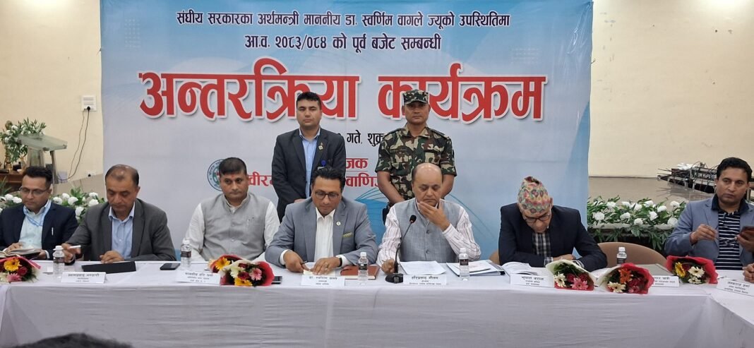 वीरगन्ज उद्योग वाणिज्य संघले शुक्रबार आयोजना गरेको आर्थिक वर्ष २०८३/०८४ को पूर्व–बजेट सम्बन्धी अन्तर्कृया कार्यक्रममा बोल्दै उहांले त्यस्तो बताउनुभएको हो । अर्थमन्त्री वाग्लेले आफू सांसद रहँदादेखि नै उधारो कारोबार व्यवस्थापनसम्बन्धी कानुनी आवश्यकताबारे आवाज उठाउँदै आएको उल्लेख गर्दै अब सरकार यस विषयमा पछि नहट्ने स्पष्ट पार्नुभयो ।